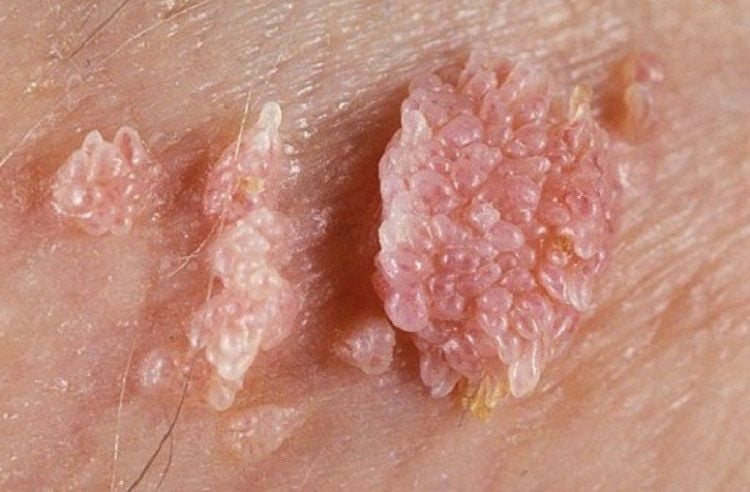 - Mụn phát triển nhanh, kết lại thành cụm giống mào gà hoặc hoa súp lơ.