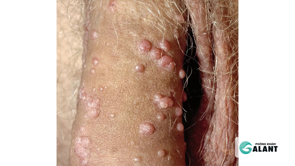 | Thân dương vật | Mụn rải rác, lan dần, có mùi hôi, dễ viêm. |